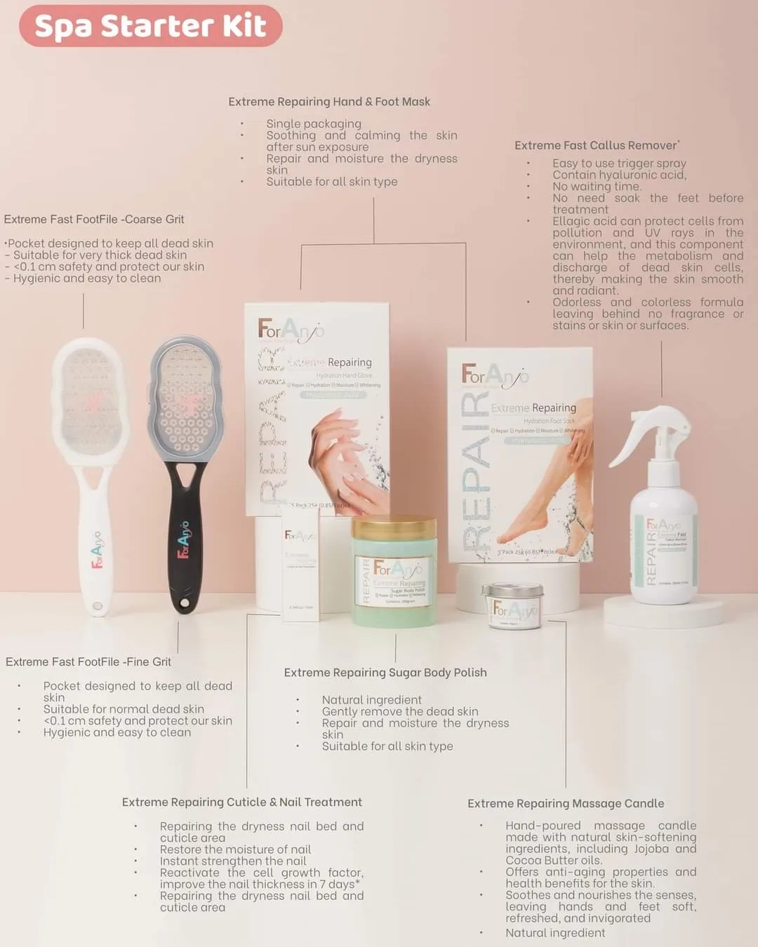 ForAnjo Spa Collection includes sea salt, sugar scrub, mud mask and massage candle designed for relaxation, exfoliation and skin renewal.